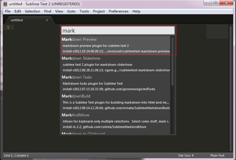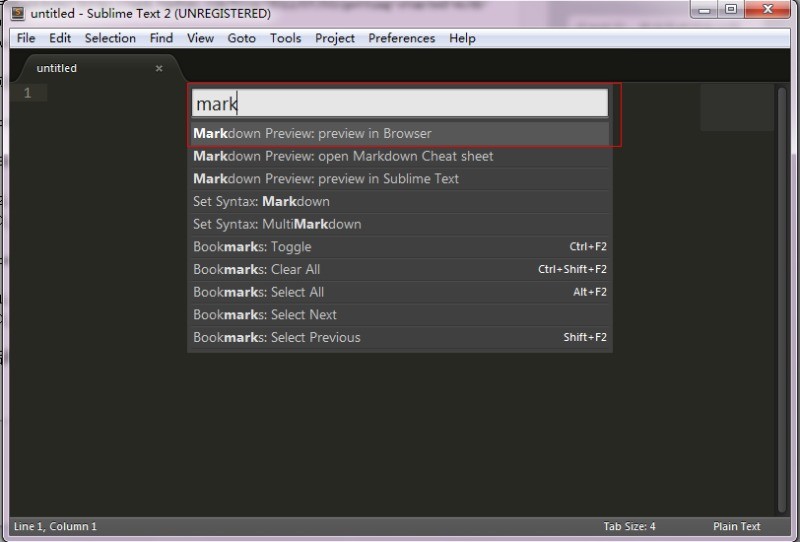 安装完成后再Ctrl + Shift + p调出命令输入markdown